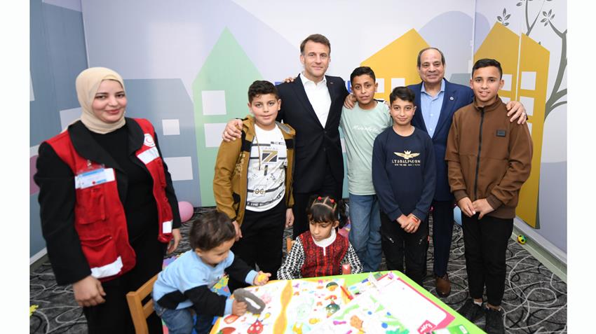 وصرّح السفير محمد الشناوي، المتحدث الرسمي باسم رئاسة الجمهورية، بأن هذه الزيارة تأتي لتأكيد تضامن فرنسا مع الجهود المصرية الكبيرة في استقبال ورعاية المصابين من أبناء الشعب الفلسطيني جراء العدوان الإسرائيلي الغاشم على قطاع غزة، حيث شملت الزيارة تفقد الرئيسين السيسي وماكرون مستشفى العريش ولقائهما بعدد من الجرحى الفلسطينيين، لا سيما من النساء والأطفال، وكذا مركز الخدمات اللوجستية التابع للهلال الأحمر المصري المخصص لتجميع المساعدات الإنسانية المقدمة من مصر وكافة الدول الموجهة إلى قطاع غزة.