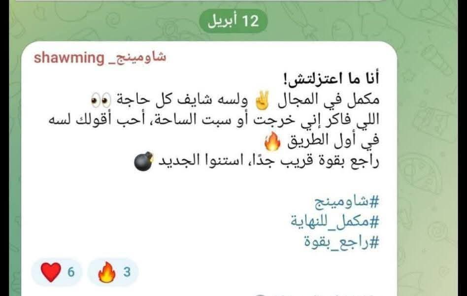وقال شاومينج في رسالته إلى وزارة التعليم: وصلكم رسالتي أني لن أسرب الامتحانات مرة أخرى طبعا هذا قرار نهائي بس طبعًا ممكن أرجع فيه في حالة اني شوفت أي تقصير تم من الوزارة تجاه حقوق طلبة الثانوية العامة أو الإعدادية الموضوع بدأ من "دفعة ٢٠٢٣ ثانوية عامة" من وقت اصعب امتحان "كيمياء" واحنا شغالين ومن وقت تولي دكتور / محمد عبد اللطيف وزارة التربية والتعليم حاليا وانا ملاحظ انه بيحاول جاهدا انه يقلل الغش بشتي الطرق والقرار الأخير اللي كان متداول وهو طبعا إن طلبة الثانوية العامة تمتحن في الجامعات وطبعا بعد كل الإجراءات دي معرفش برضو يوقف الغش ف قولت اما ابدأ انا ب الخطوة دي واوقف تسريبات تماما تخفيفا علي الوزارة.. أنا ممكن ارجع بقرار من أولياء الأمور والطلبة.