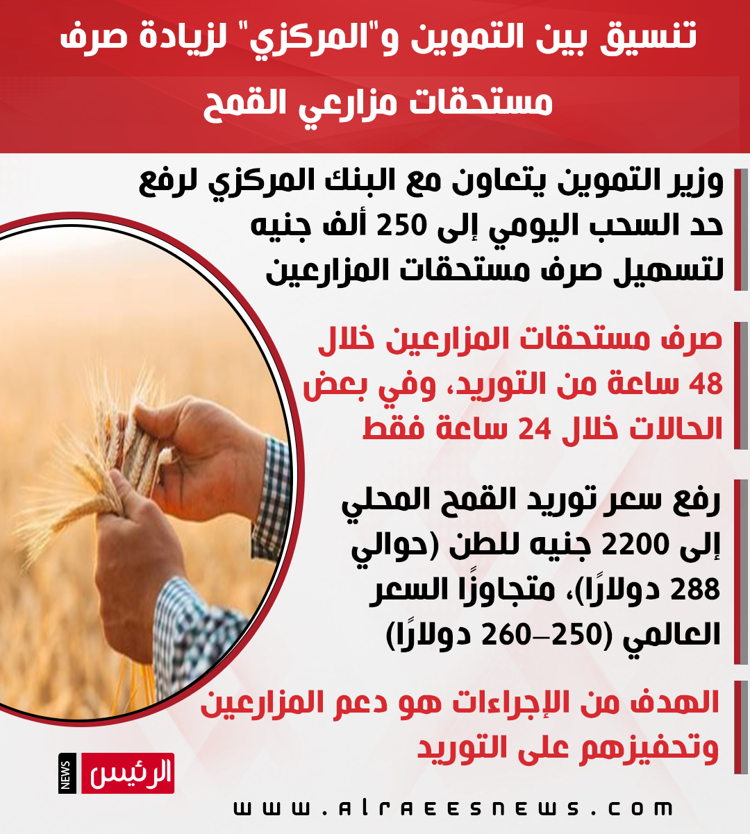 تنسيق بين "التموين" و"المركزي" لزيادة صرف مستحقات مزارعي القمح