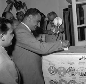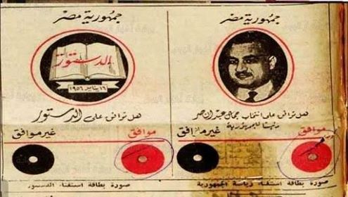 جمال عبد الناصر مع سؤال للناخب: هل توافق على انتخاب جمال عبد الناصر رئيسا للجمهورية؟