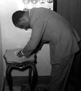 صور لعبد الناصر وقرينته تحية كاظم، وهما يدليان بصوتيهما في الاستفتاء.