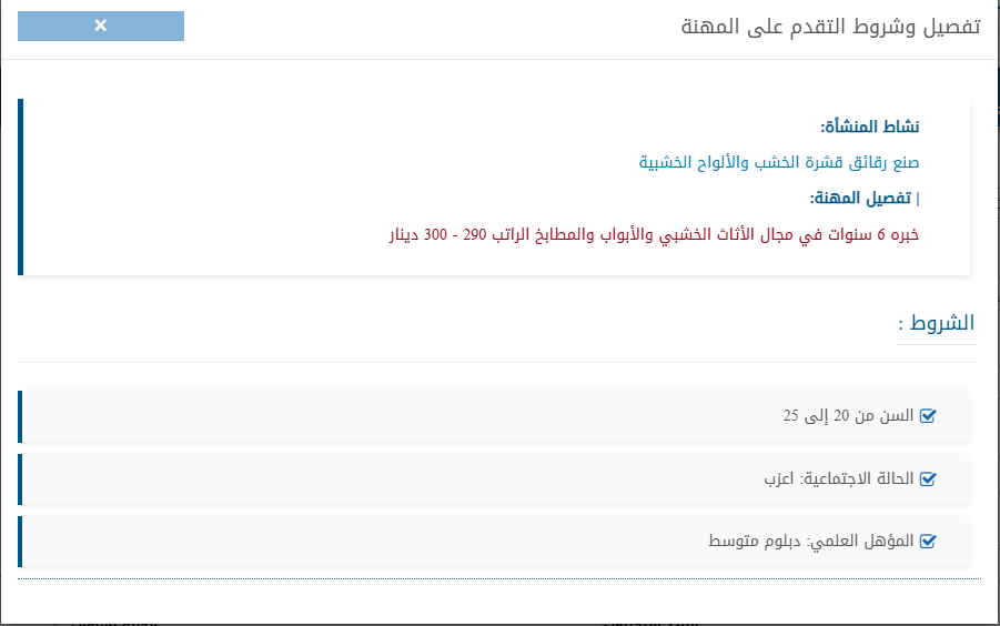 وأوضح وزير العمل أن هناك وظائف خالية ( النشاط الزراعي، الصناعات الغذائية، الصناعات الخشبية والأثاث، الصناعات الإنشائية، والتصدير وغيرها، وذلك براتب شهري يتراوح ما بين 290 و500 دينار أردني كل شهر.