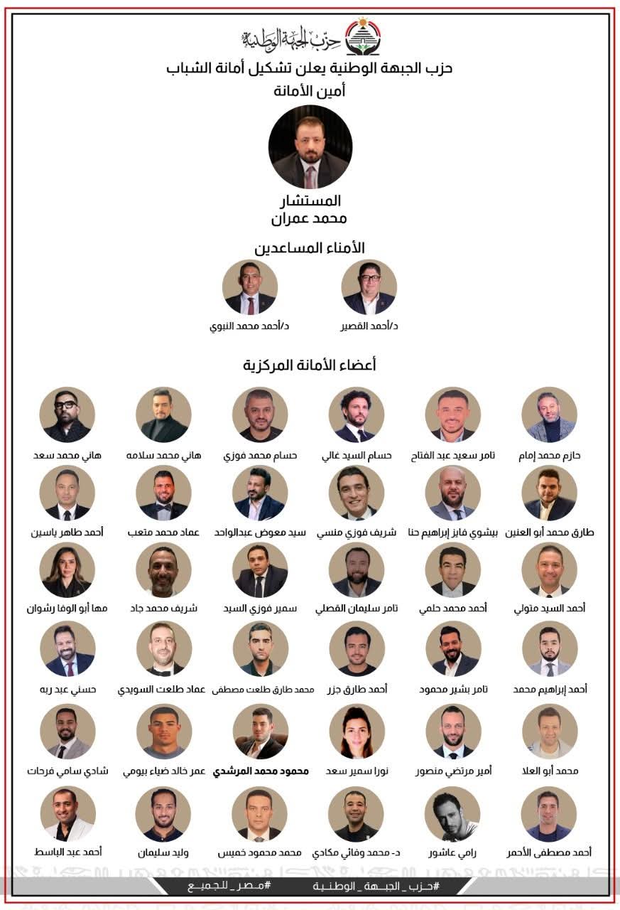 وتولى المستشار محمد عمران منصب أمين أمانة الشباب بالحزب، ويعاونه كل من: