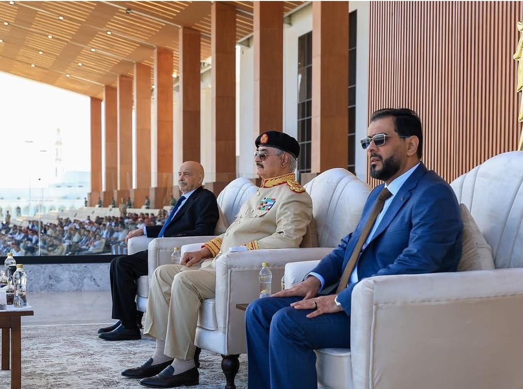 وأشار حفتر إلى أن المدينة العسكرية التي يحتضنها العرض تمثل "أحد إنجازات القوات المسلحة التي تُضاف إلى مسيرة البناء"، مؤكدًا أن "الهدف الأساسي هو استعادة الدولة الليبية وهيبتها، وتحقيق الأمن والاستقرار في كل ربوع الوطن".