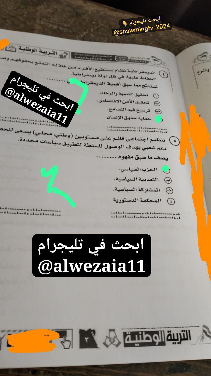 - حل أسئلة امتحان التربية الوطنية لطلاب الصف الثالث الثانوي 2025