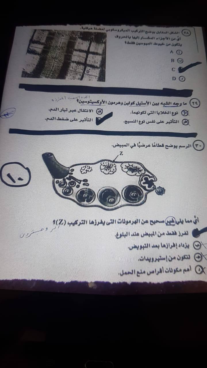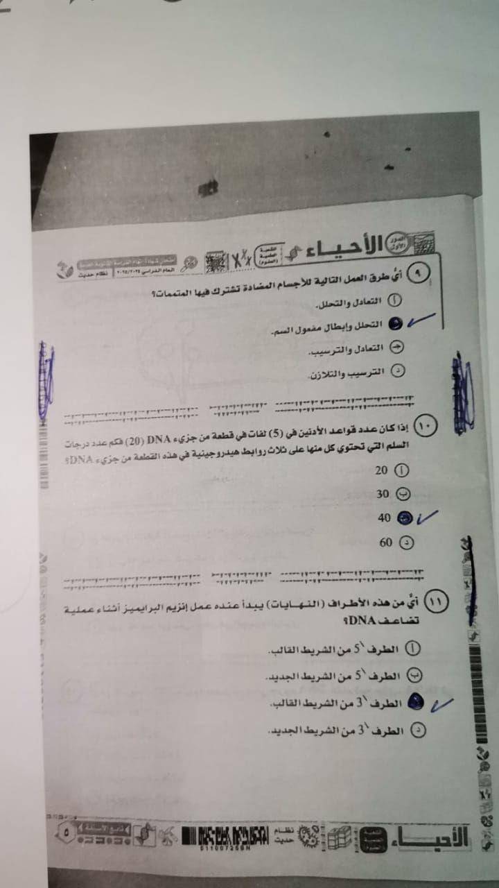حل امتحان الأحياء للصف الثالث الثانوي 2025
