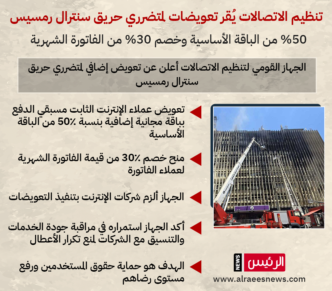 عاجل| "تنظيم الاتصالات" يوضح تفاصيل تعويض متضرري حريق سنترال رمسيس