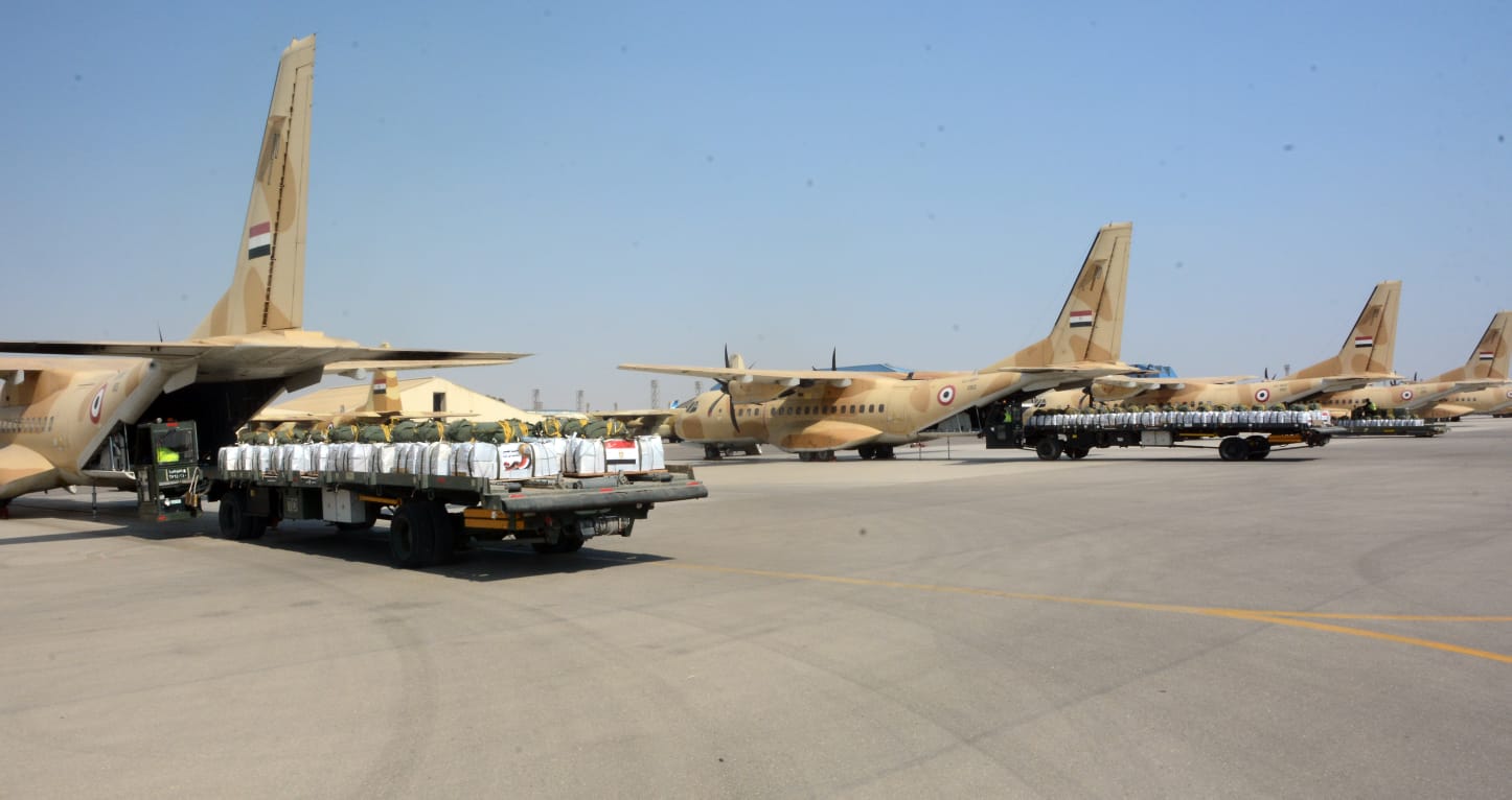 أقلعت 9 طائرات نقل عسكرية من جمهورية مصر العربية على مدار الثلاث أيام الماضية محملة بعشرات الأطنان من المساعدات الغذائية لتنفيذ أعمال الإسقاط الجوى على المناطق التى يصعب الوصول إليها برًا بقطاع غزة، جاء ذلك تزامنًا مع الجهود المصرية لاستمرار تدفق شاحنات المساعدات برًا.