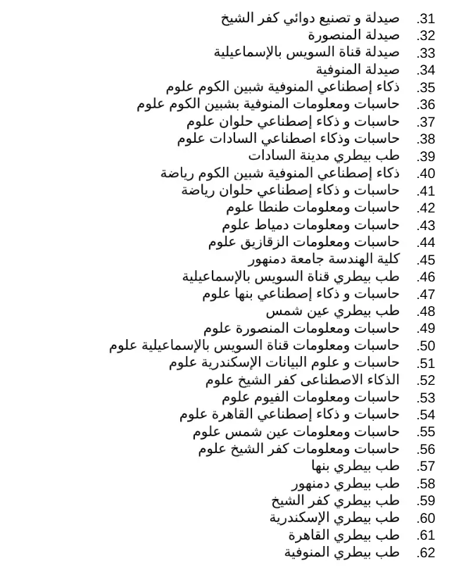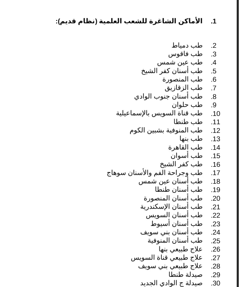 أماكن خالية في تنسيق المرحلة الثالثة (النظام القديم) بكليات طب وهندسة وعلوم