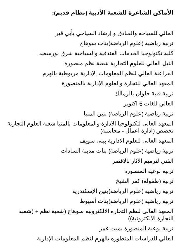 الأماكن الشاغرة لطلاب الشعبة العلمية نظام قديم