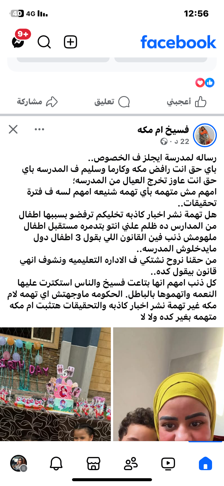 وكانت أثارت رسالة منشورة عبر الصفحة الرسمية للبلوجر المعروفة باسم “أم مكة”، والتي تخضع حاليًا للتحقيقات على خلفية اتهامها بنشر أخبار كاذبة، جدلًا واسعًا بعد مناشدة وجهتها لإدارة إحدى المدارس الخاصة بمدينة الخصوص.