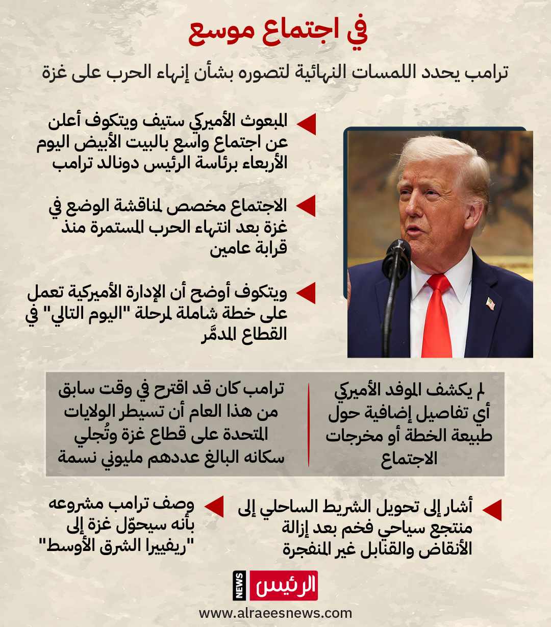 عاجل| في اجتماع موسع.. ترامب يحدد اللمسات النهائية لتصوره بشأن إنهاء الحرب على غزة