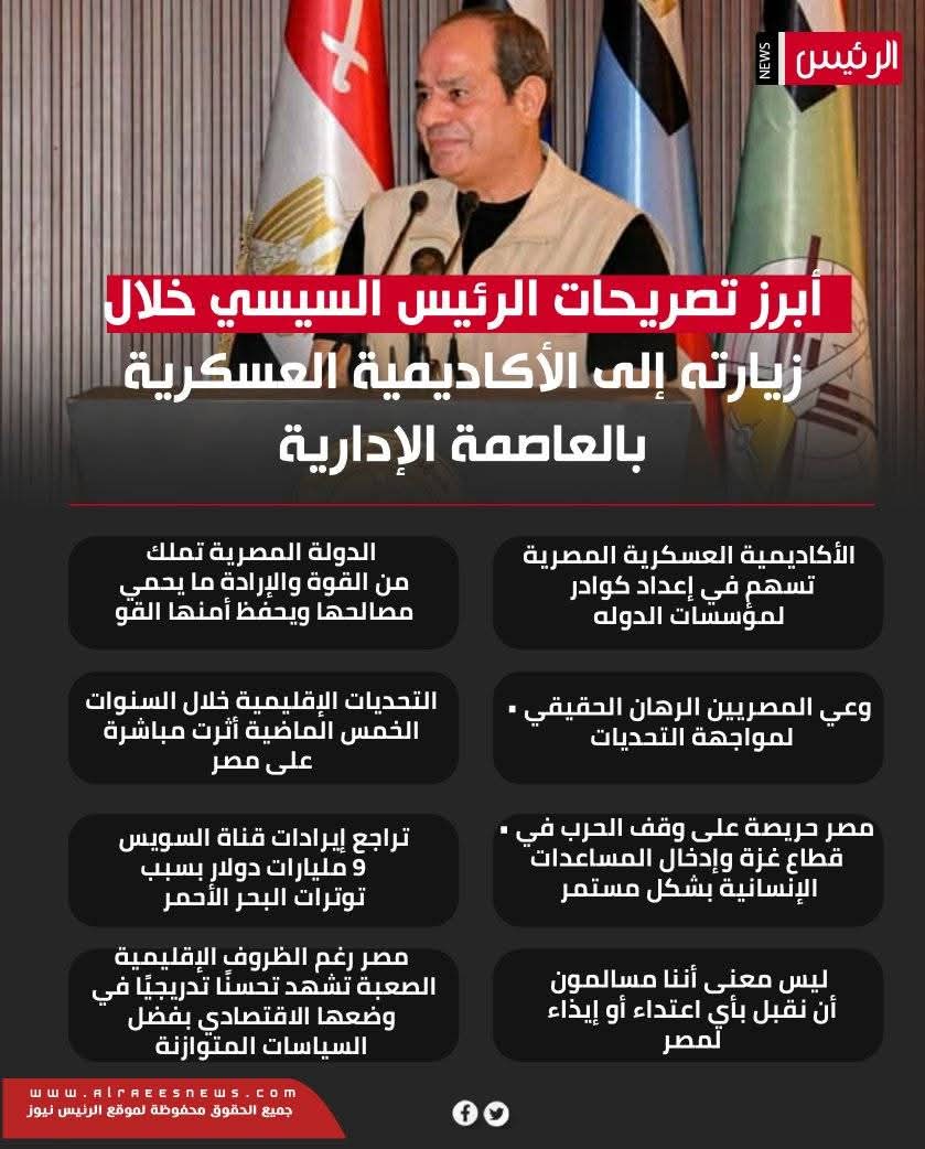 “وعي المصريين يمدنا بالإرادة والقوة”.. أبرز تصريحات الرئيس السيسي خلال جولته بالأكاديمية العسكرية