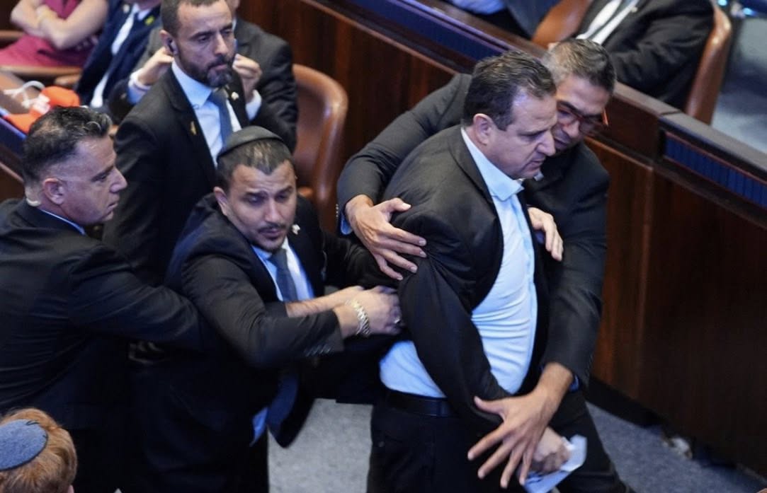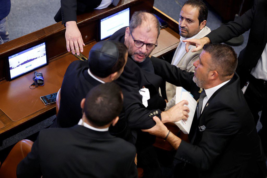 وأفادت إذاعة الجيش الإسرائيلي، بإخراج عضوي الكنيست عوفر وعودة من القاعة في أعقاب الواقعة.