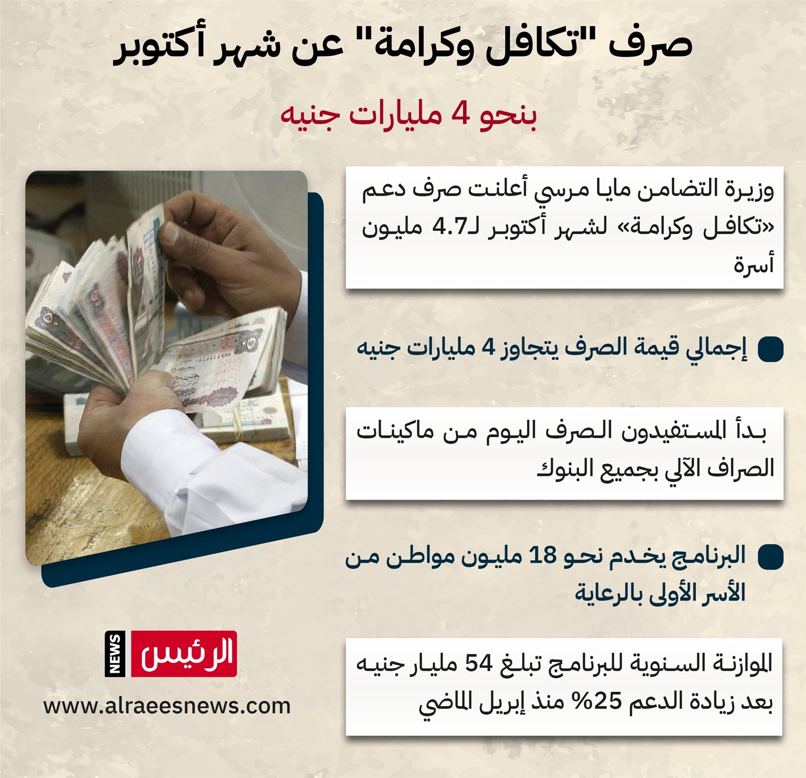 صرف "تكافل وكرامة" عن شهر أكتوبر بنحو 4 مليارات جنيه.. اليوم