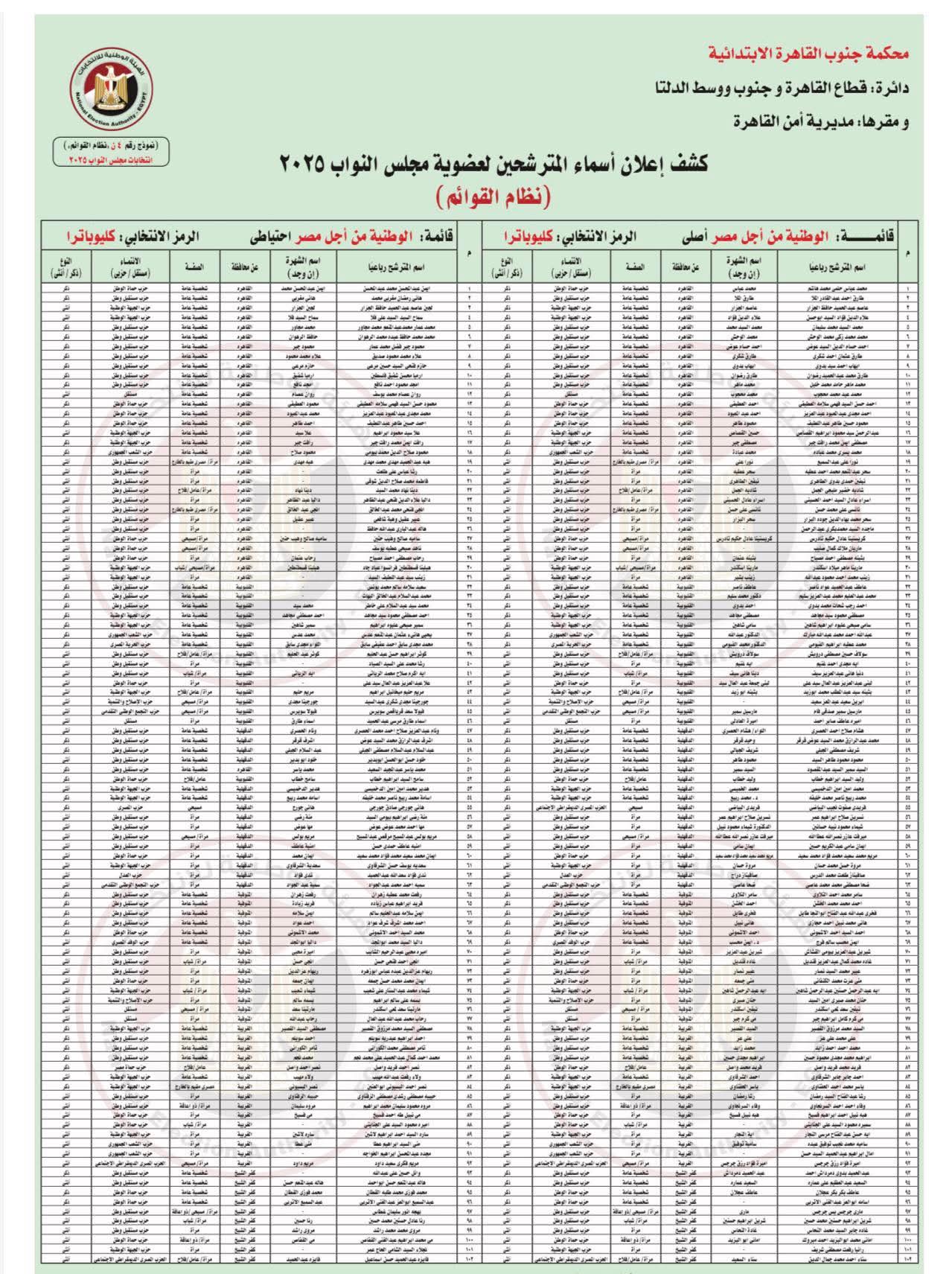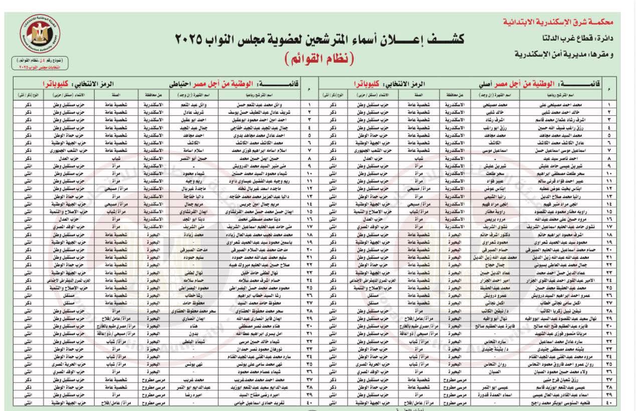 انتخابات النواب 2025.. أسماء مرشحي القائمة الوطنية في الـ4 قطاعات