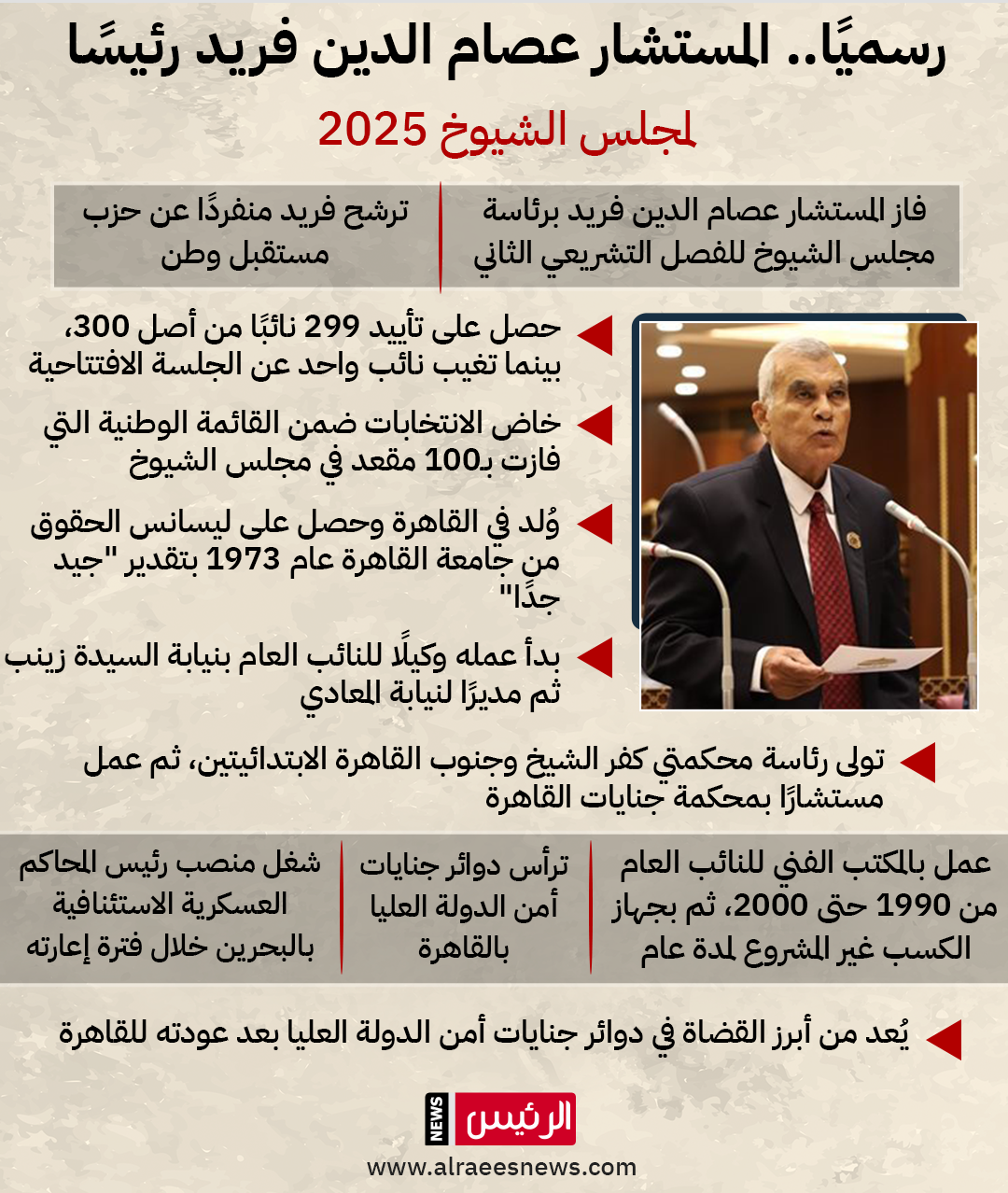 عاجل| من هو المستشار عصام الدين فريد رئيس مجلس الشيوخ الجديد؟
