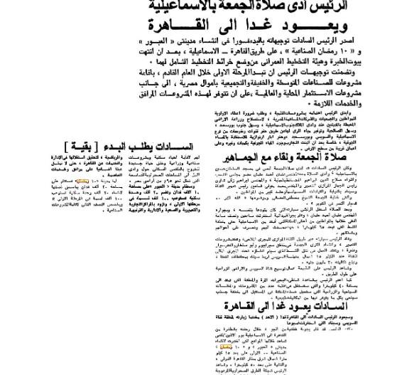 "أصدر الريس السادات توجيهاته بالبدء فورا في إنشاء مدينتي العبور و10 رمضان