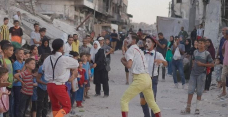 كنت أتابع عبر الإنترنت عروض هذه الفرقة التي تقدم عروضًا للأطفال في الملاجئ والشوارع رغم الهجمات المتواصلة، بدا لي الأمر شبه خيال: مجموعة أشخاص يلبسون مناخير مهرج، أو يقفون على أرجل خشبية طويلة، ويقدمون ألعاب الجمباز والتهريج بينما الموت يخيم في الخلفية، قضيت أسبوعًا كاملًا أحاول الوصول إليهم، وفي أول مكالمة، ردّ محمد – مدير الفرقة بصوته الدافئ – وقال لي: «نحن هنا لنثبت أن الحياة لا تزال ممكنة»، فأخبرته أنني من مصر، وأن ما يفعلونه يجب أن يُوثق، ضحك عندما أخبرته أن صورة حسابي كانت لمهرج، وقال: «إذن فأنت واحدة منا»، بعد ثلاثة أسابيع فقط من تلك المكالمة بدأنا التصوير.