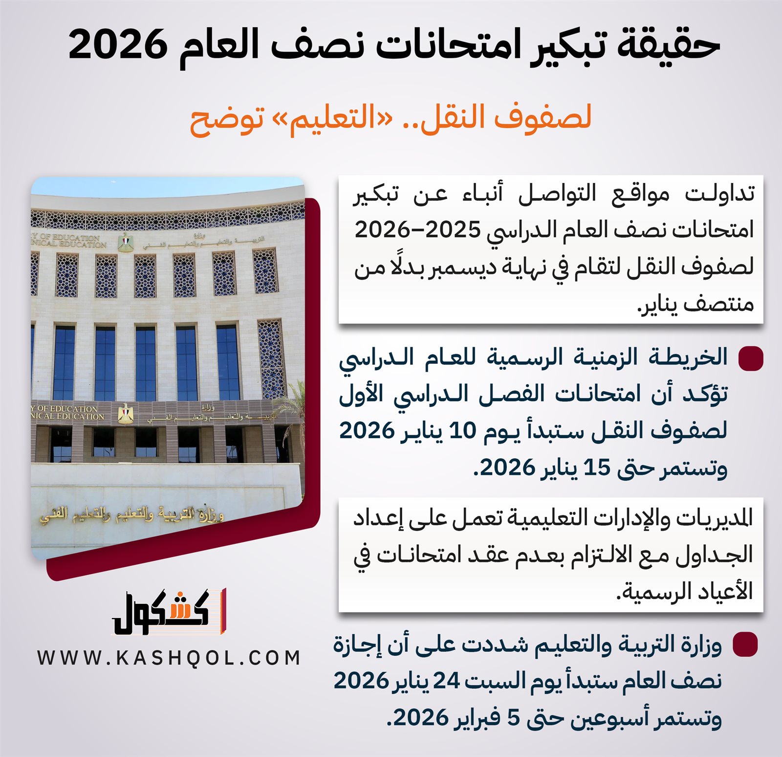 عاجل| حقيقة تبكير مواعيد امتحانات نصف العام (إنفوجراف)
