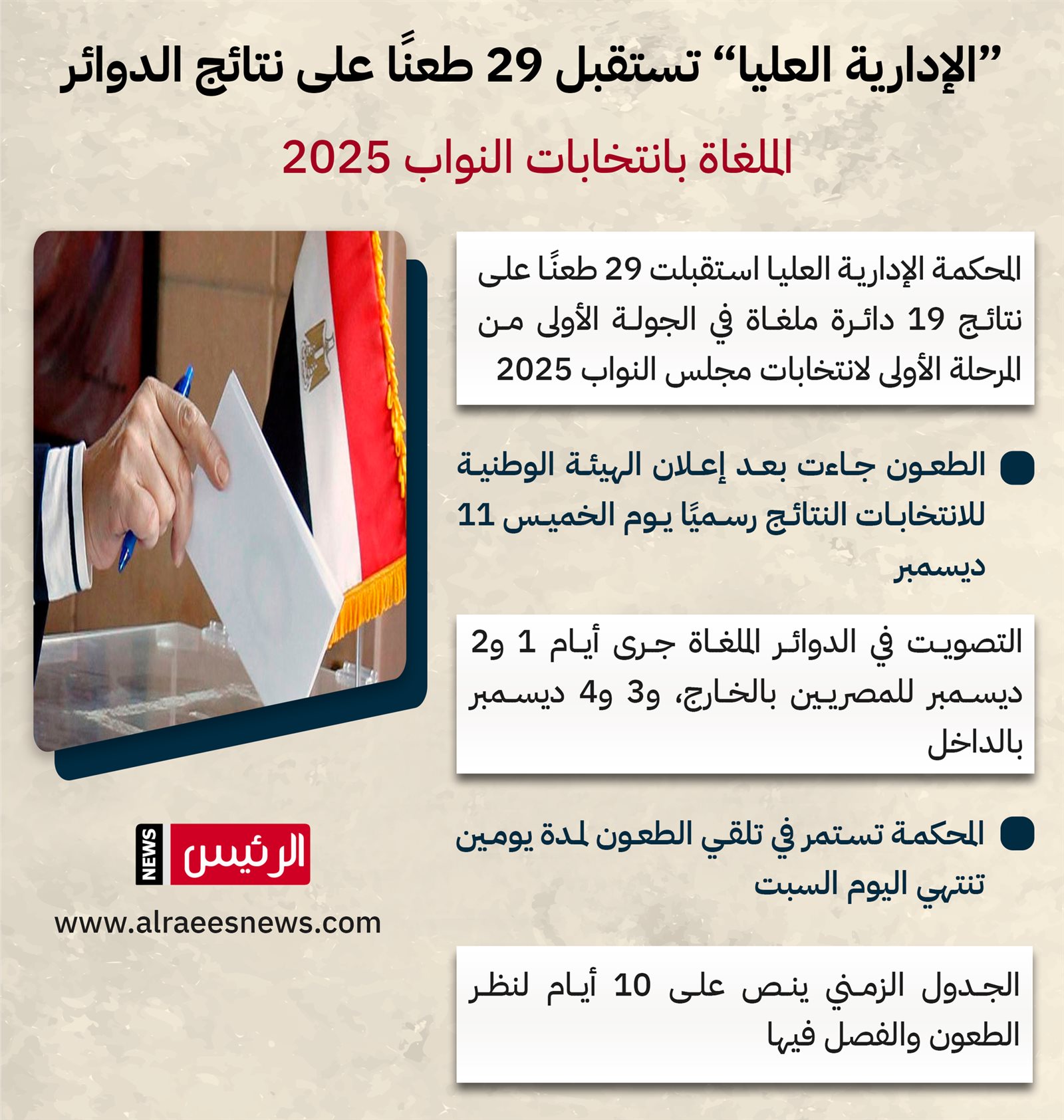 29 طعنًا على نتائج 19 دائرة ملغاة في انتخابات النواب 2025| إنفوجراف