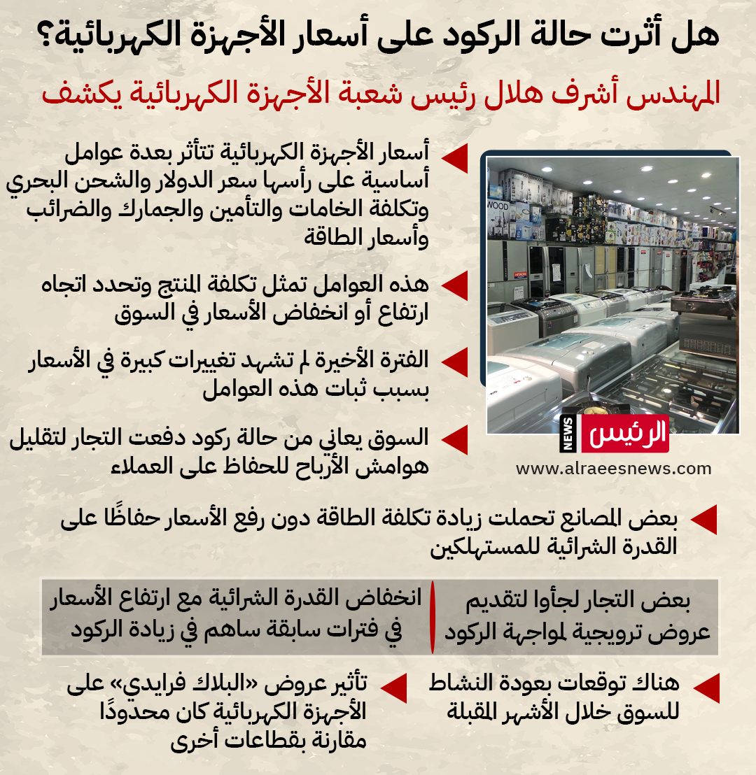 هل أثرت حالة الركود على أسعار الأجهزة الكهربائية؟.. الشعبة تجيب| إنفوجراف