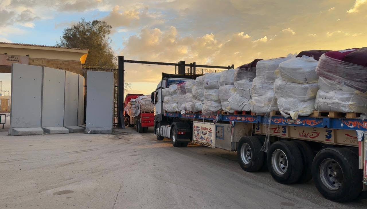 "بطاطين وملابس شتوية".. قافلة المساعدات المصرية الـ94 تدخل قطاع غزة