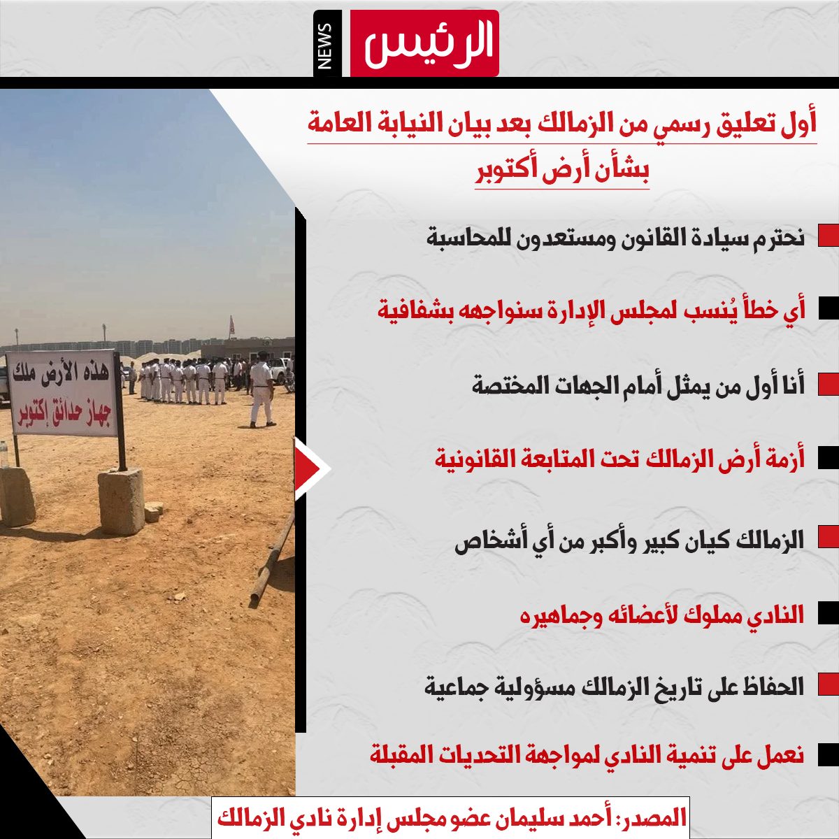 وقال أحمد سليمان، عبر حسابه الرسمي على موقع التواصل الاجتماعي «فيس بوك»: «إلى من يهمه الأمر، إذا كان هناك أي خطأ منسوب إلى مجلس الإدارة، فنحن على أتم الاستعداد للمحاسبة والمساءلة، وأنا أول من يمثل أمام أي جهة مختصة».