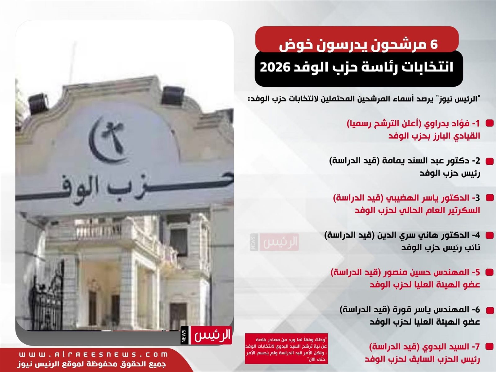 “الرئيس نيوز” يستعرض أسماء المرشحين لانتخابات رئاسة حزب الوفد في الإنفوجراف التالي: