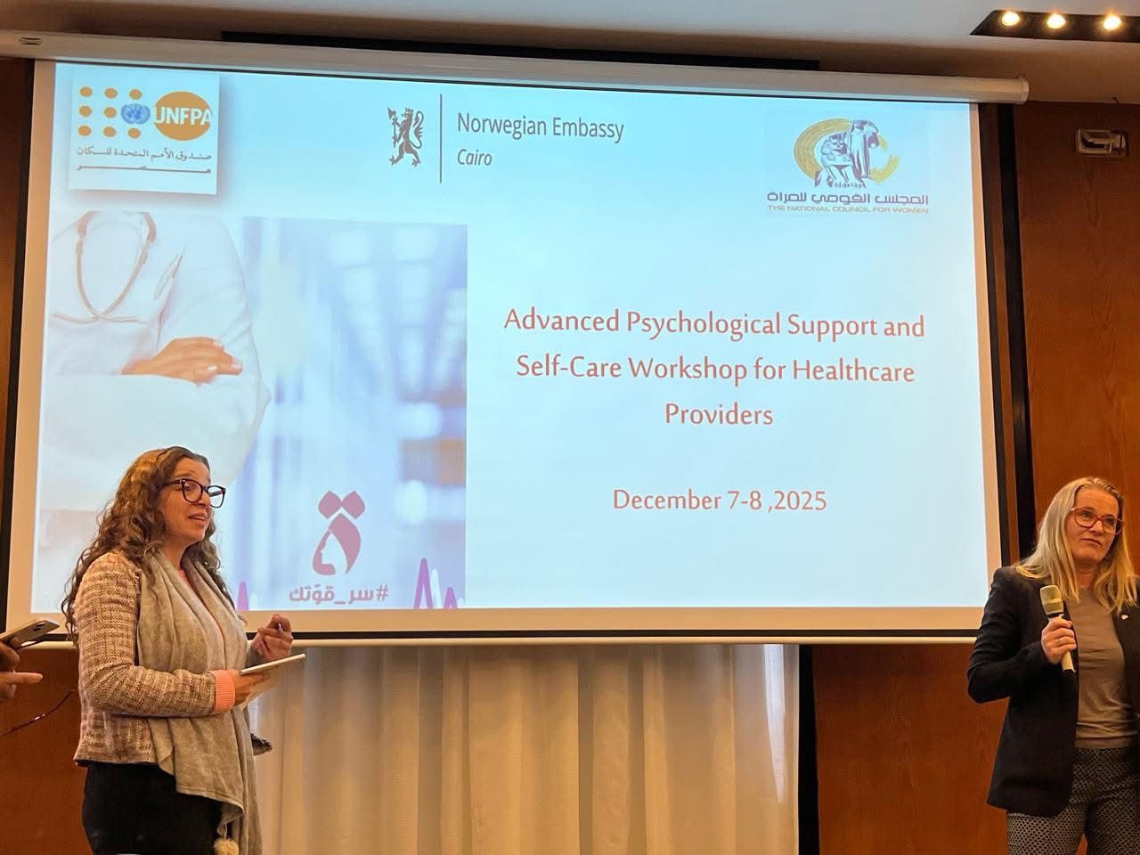 نظّم المجلس القومي للمرأة، ممثلًا في وحدة مناهضة العنف ضد المرأة، وبالتعاون مع UNFPA Egypt صندوق الأمم المتحدة للسكان في مصر، وسفارة النرويج بالقاهرة، ورشة عمل متخصصة في مجال الدعم النفسي والرعاية الذاتية، استهدفت 32 طبيبًا وطبيبة من قسم الطب الشرعي والسموم بكلية طب جامعة عين شمس بمستشفى الدمرداش، واستمرت على مدار يومين.