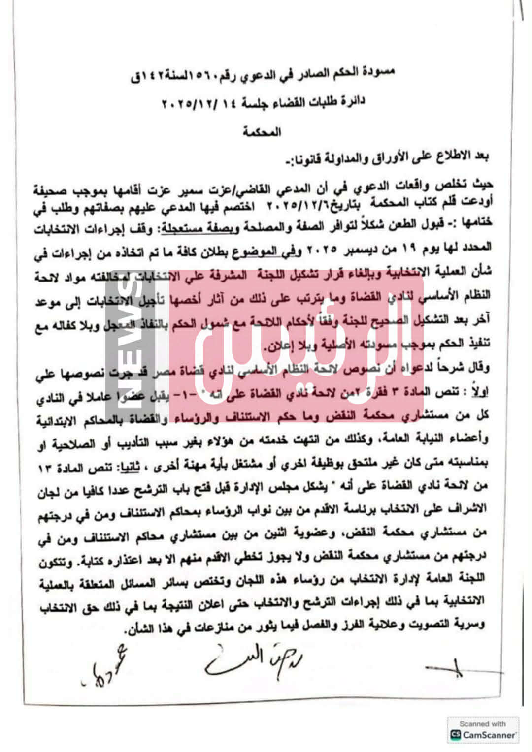 انتخابات نادي قضاة مصر.. حيثيات الحكم بوقفها وتجميد إجراءاتها: "مخالفات بالجملة" (مستندات)