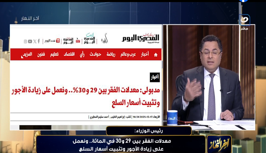 واختتم الإعلامي خالد أبو بكر، حديثه بالتأكيد على أن مواجهة الفقر في مصر تحتاج إلى خطة عاجلة ومستدامة، تشمل تحسين الأجور، دعم الأسر محدودة الدخل، تثبيت الأسعار، وضبط الإنفاق الحكومي، مع مراعاة القدرة الشرائية للمواطنين والتحديات الاقتصادية الحالية، وأن إعادة رسم السياسات الاقتصادية بطريقة تركز على الواقع اليومي للمواطنين الفقراء، هي السبيل لضمان حياة كريمة وتحقيق استقرار اجتماعي شامل.