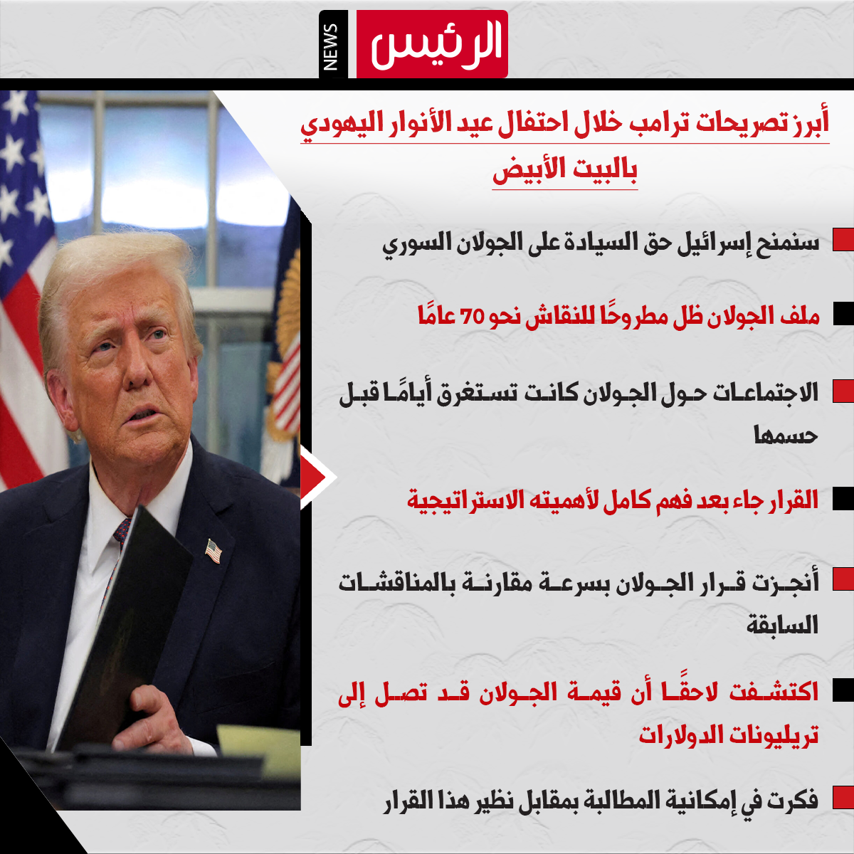 ترامب: وقعت قرارًا يمنح إسرائيل السيادة على هضبة الجولان السورية| إنفوجراف