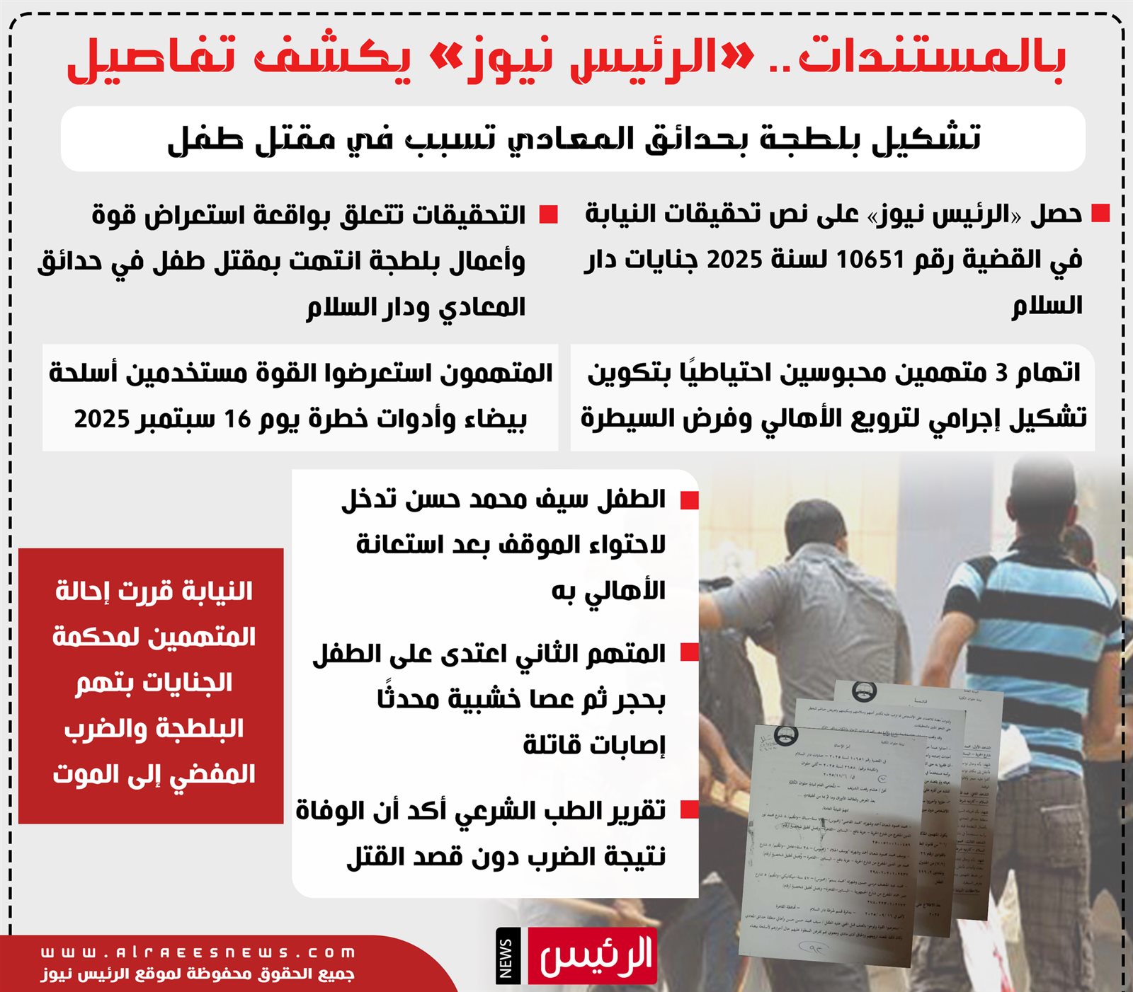 «الرئيس نيوز» يكشف تفاصيل مقتل طفل على يد بلطجية بحدائق المعادي| إنفوجراف