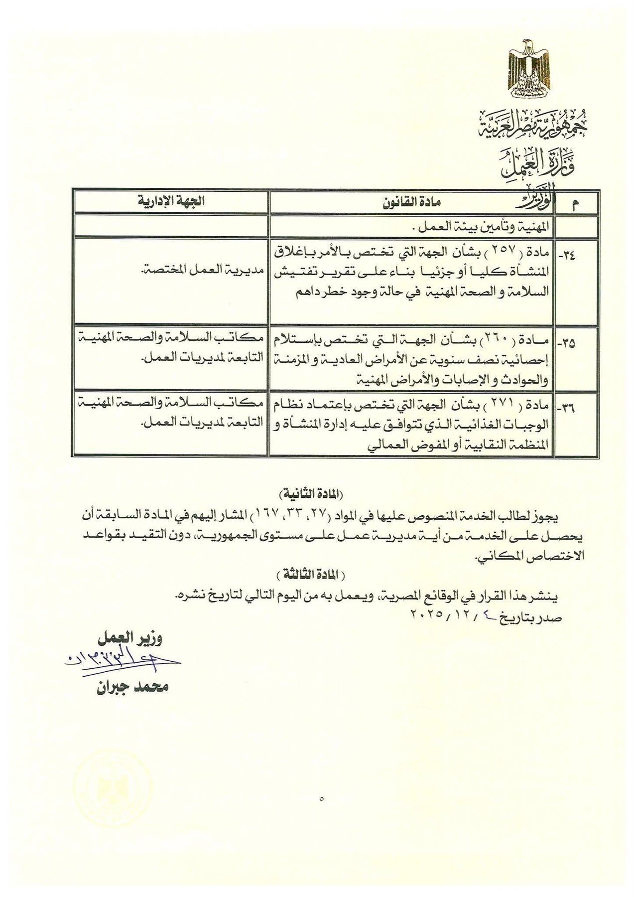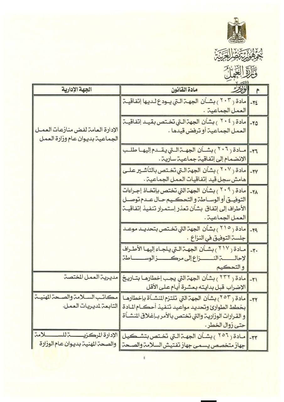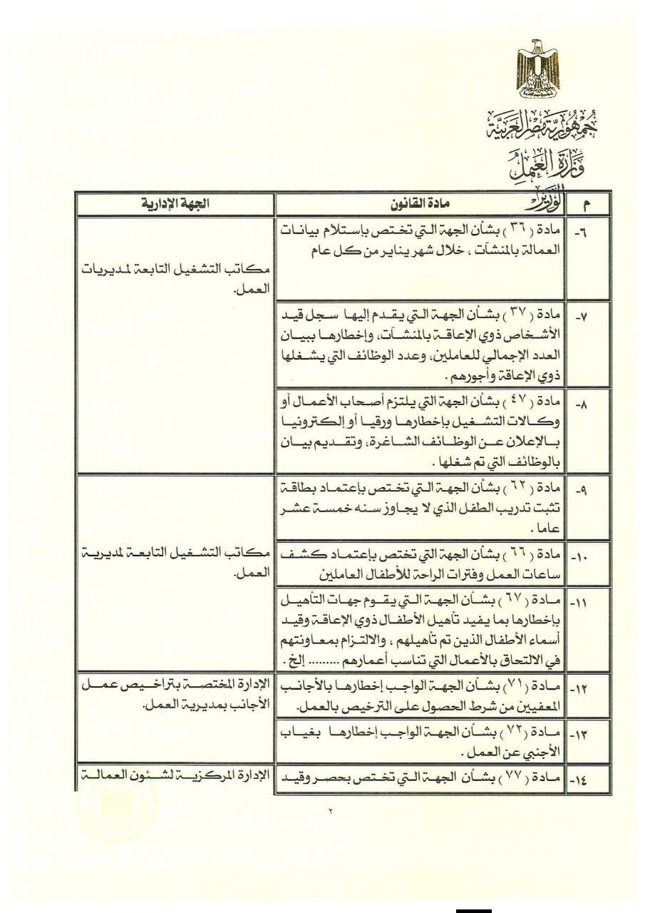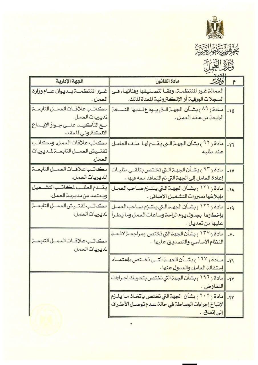 قرار وزاري جديد بتحديد الجهة المختصة بتطبيق أحكام قانون العمل الجديد (مستندات)