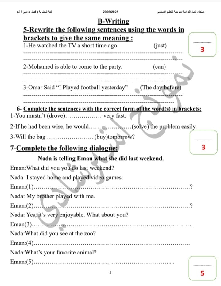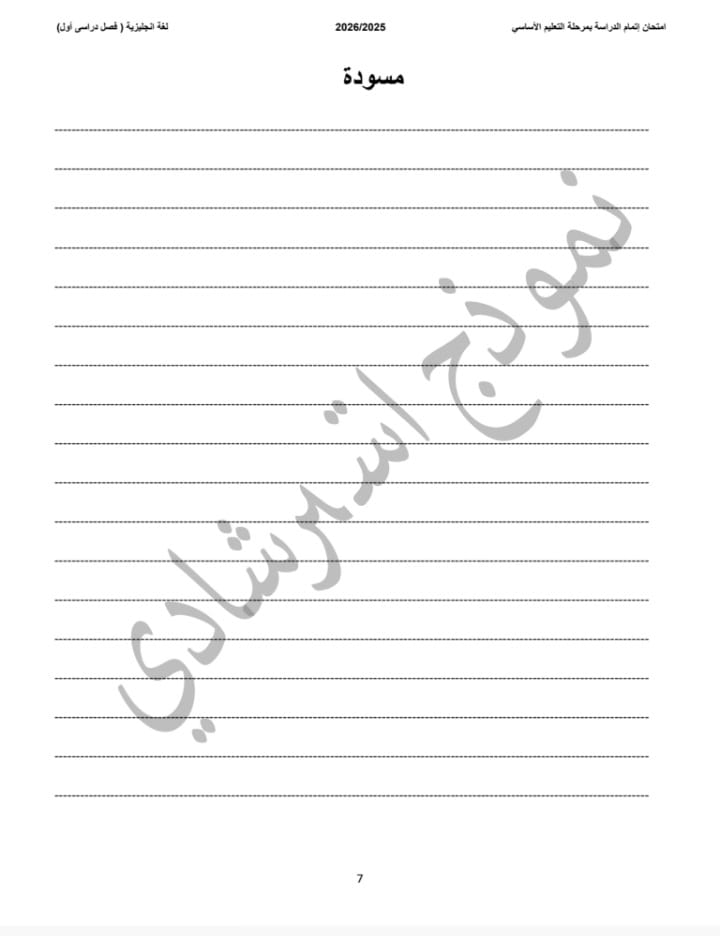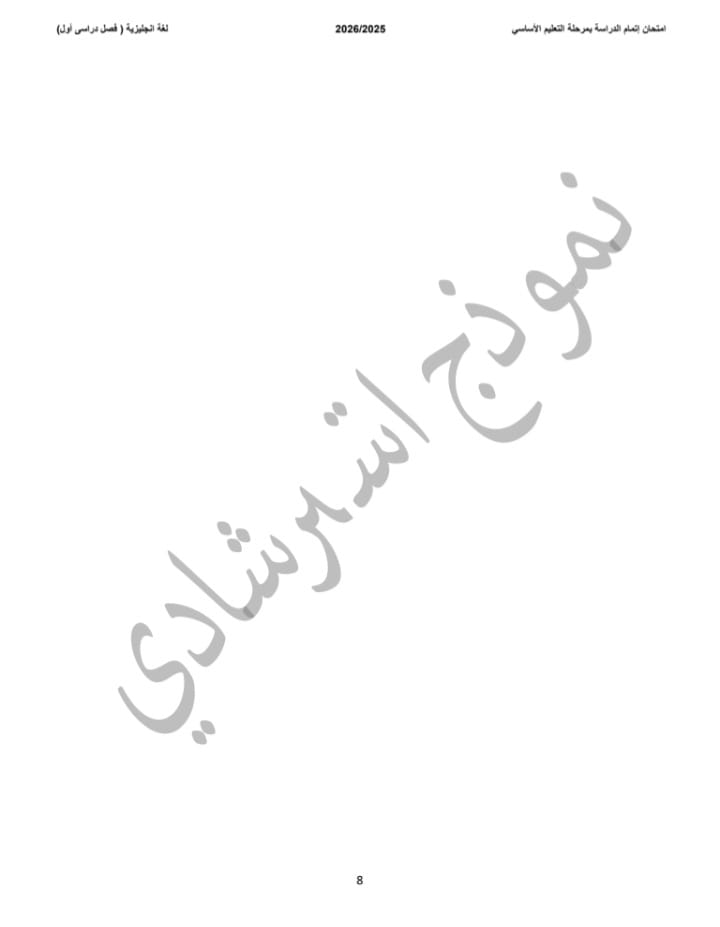 ويمكن الحصول على نموذج بوكليت بمادة اللغة الإنجليزية للشهادة الإعدادية الترم الأول 2026 من خلال مطالعة الصور التالية:
