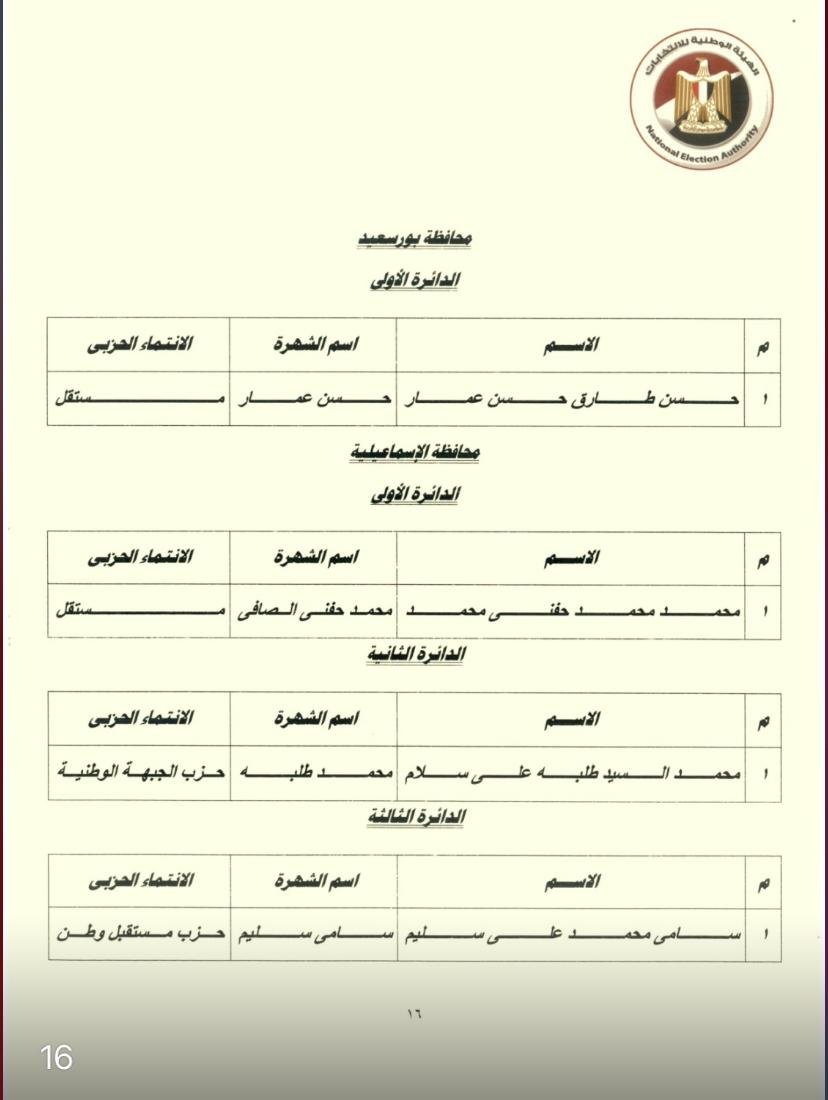 النتيجة الرسمية أسماء الفائزين بانتخابات جولة الإعادة بمجلس النواب