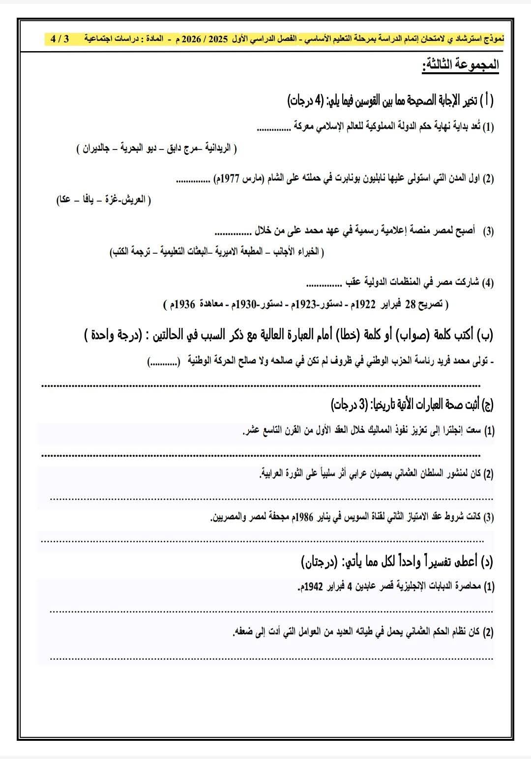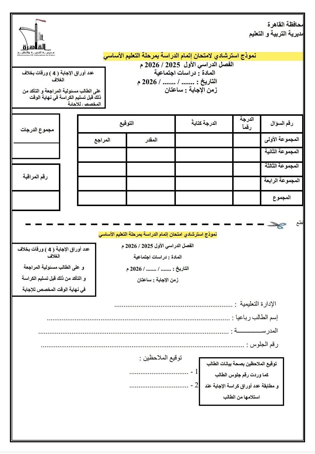 تواصل مديرية التربية والتعليم بالقاهرة نشر النماذج الاسترشادية بنظام البوكليت في مادة الدراسات الاجتماعية، وذلك في إطار الاستعداد لامتحانات الفصل الدراسي الأول للعام الدراسي ٢٠٢٥ / ٢٠٢٦ لطلاب الشهادة الإعدادية.