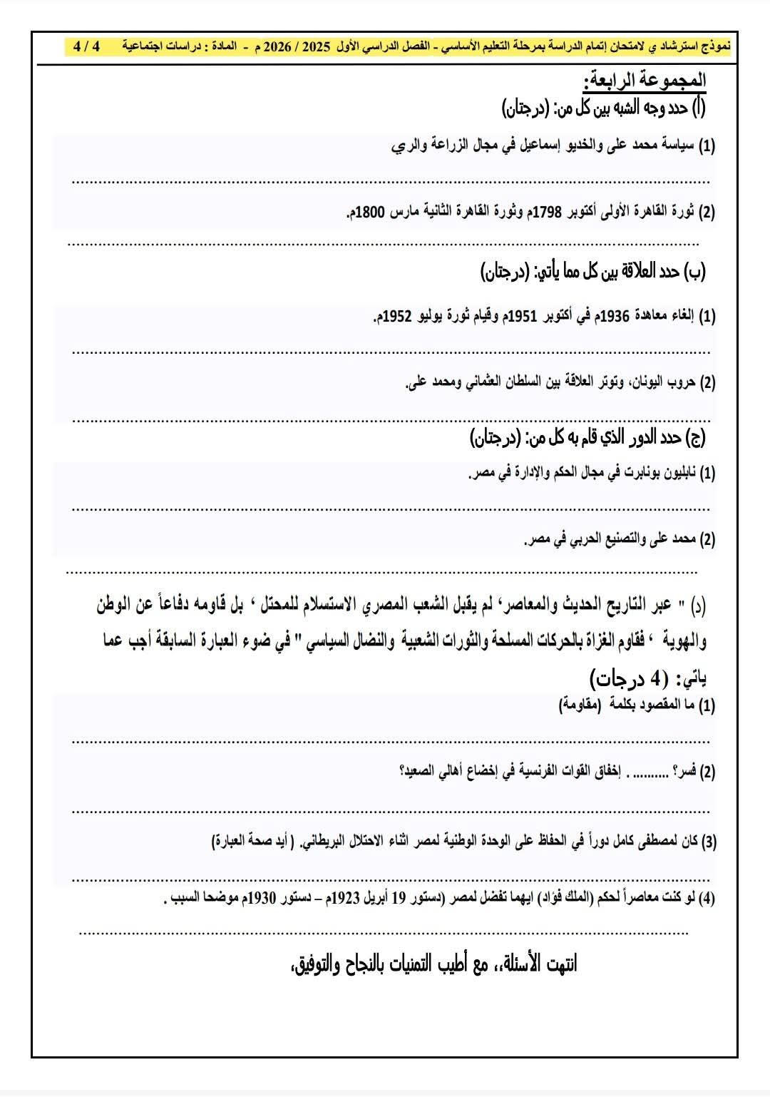 لطلاب الشهادة الإعدادية.. النماذج الاسترشادية بمادة الدراسات الاجتماعية بنظام البوكليت