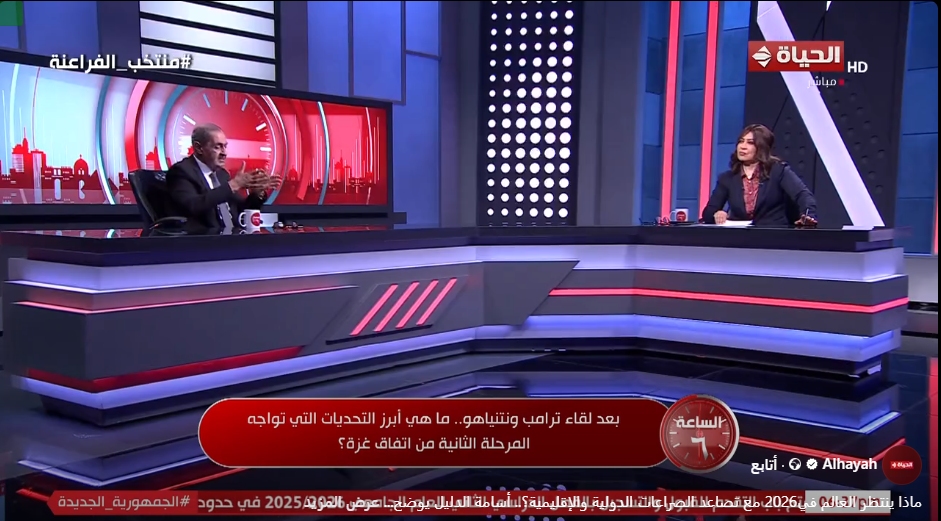 وأشار المحلل السياسي، خلال لقاءه ببرنامج «الساعة 6» مع الإعلامية عزة مصطفى على قناة الحياة، إلى أن عام 2026 سيكون عامًا لمراجعة كل شيء، حيث ستفرض الجغرافيا السياسية كلمتها النهائية، فضًلا عن أن كثيرًا من الصراعات ستواجه حقائق صارمة بعد سنوات من التأجيل والمراوحة دون حلول حاسمة، ما يجعل من العام المقبل فترة حسم مهمة على مستوى المنطقة بأسرها.