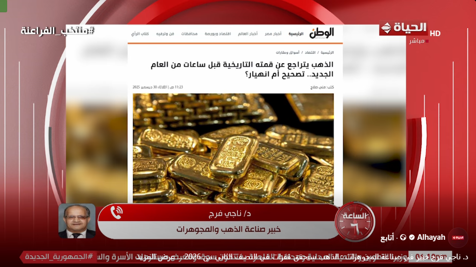 وأضاف خبير المجوهرات، خلال مداخلة هاتفية ببرنامج «الساعة 6» على فضائية الحياة، أن الذهب يظل استثمارًا آمنًا على المدى الطويل، موضحًا أنه حتى في حالة حدوث تراجعات مؤقتة، فإن الأسعار تعود سريعًا للارتفاع، ما يجعله الملاذ الأمن للدول والمستثمرين على حد سواء، وأن الدول التي تمتلك نسبًا كبيرة من احتياطاتها في الذهب، خاصة لدى البنوك المركزية، تعتمد عليه كحماية ضد تقلبات الأسواق العالمية والعملات الأجنبية.