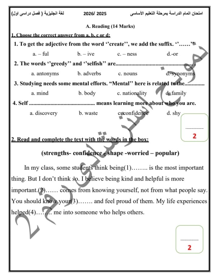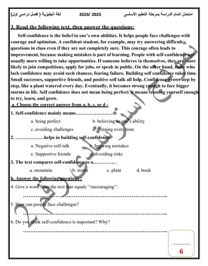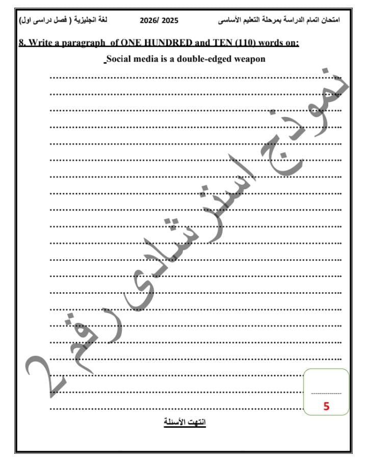 ويمكن الحصول على النماذج الاسترشادية بنظام البوكليت في مادة اللغة الإنجليزية لطلاب الشهادة الإعدادية الترم الأول 2026 من خلال مطالعة الصور التالية: