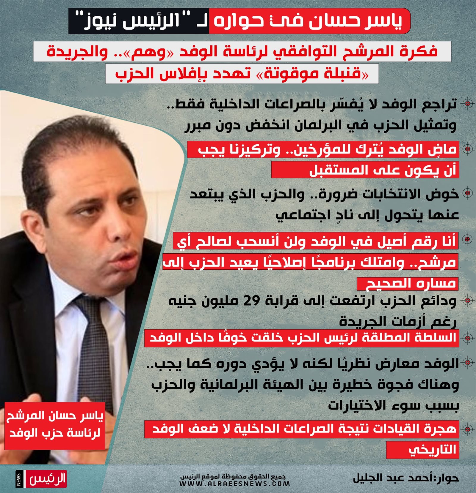 المرشح لرئاسة حزب الوفد في حوار مع لـ«الرئيس نيوز»: