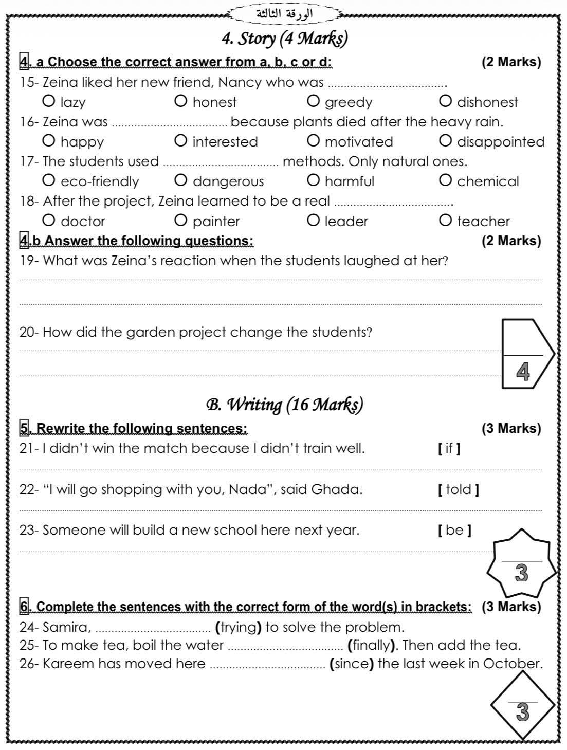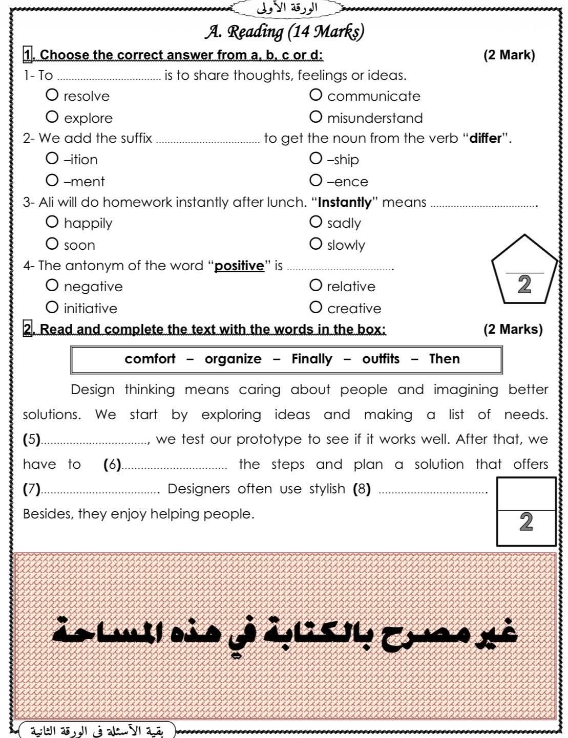 ويمكن الحصول على نماذج امتحانات لـ الشهادة الإعدادية 2026 بنظام البوكليت في مادة اللغة الإنجليزية من خلال مطالعة الصور التالية: