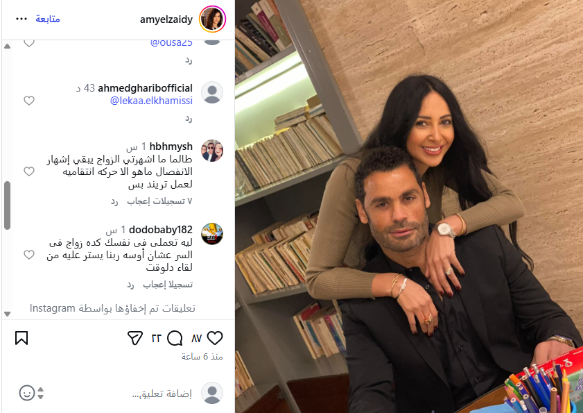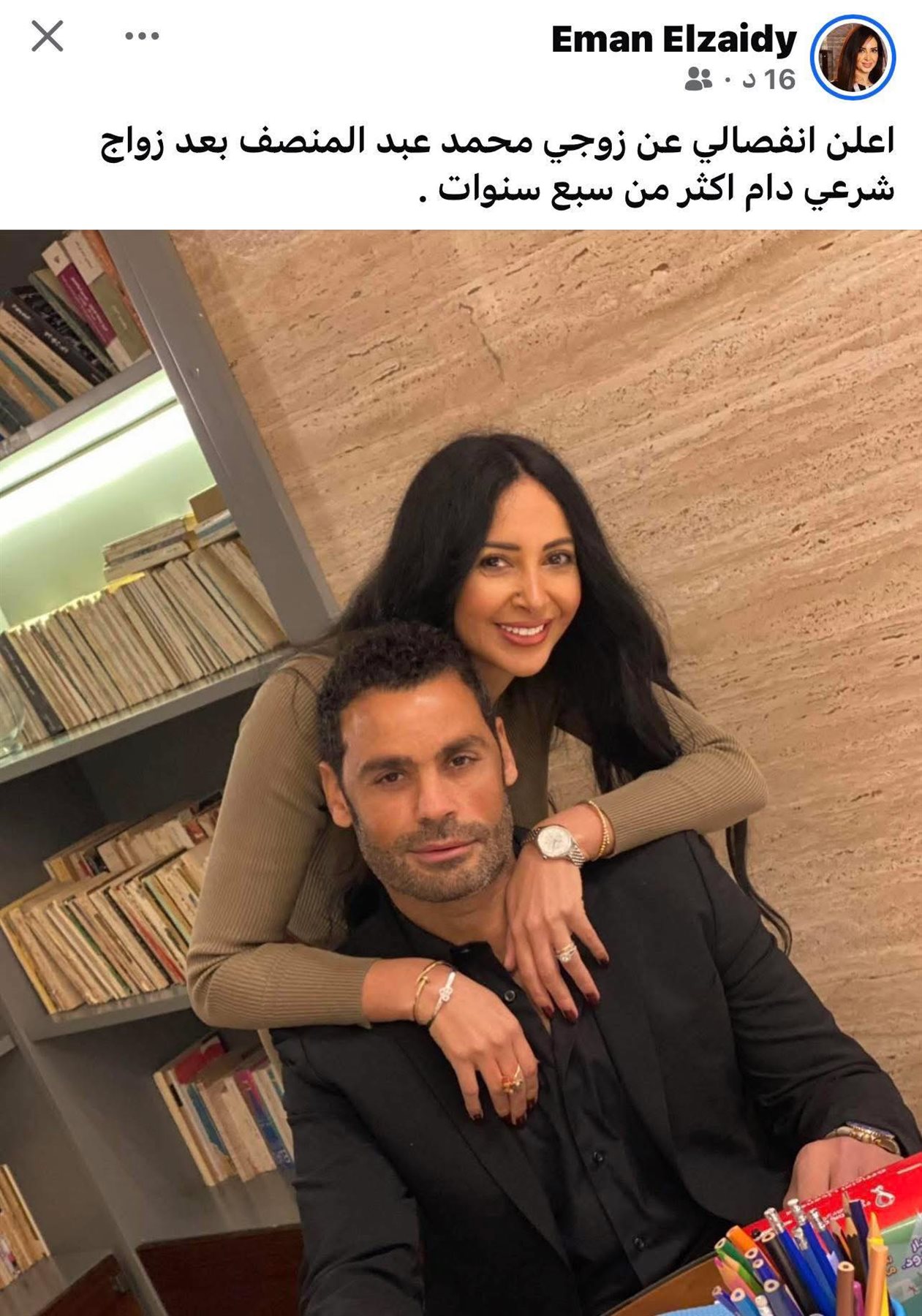 تفاصيل انفصال الممثلة ايمان الزيدي عن محمد عبد المنصف