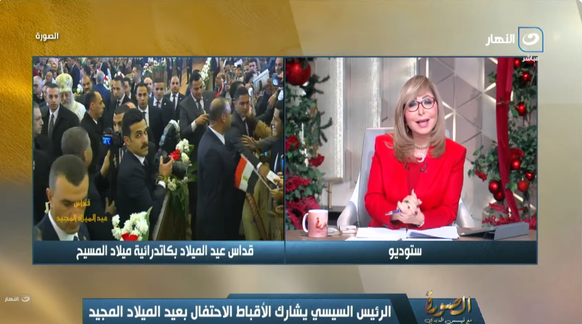 وتطرقت لميس الحديدي، خلال تقديمها برنامج «الصورة» على شاشة قناة النهار، إلى زيارة الرئيس عبد الفتاح السيسي للكاتدرائية بالعاصمة الإدارية الجديدة، مشيدة بالاحتفاء الكبير الذي لاقاه من المصلين وشعب الكنيسة، قائلة: «اللقطات الحميمة من الصور والورد والسيلفي من أجمل المشاهد التي ننتظرها كل عام، وتؤكد المحبة الحقيقية التي يكنها المواطنون للرئيس»، وأن الرئيس يزور الكنيسة كل عام منذ عام 2015، مشيرة إلى أن هناك حاجزًا خشبيًا يحاول المصلون تجاوزه لمصافحة الرئيس، ما يعكس تعلق المواطنين وحبهم الشديد.