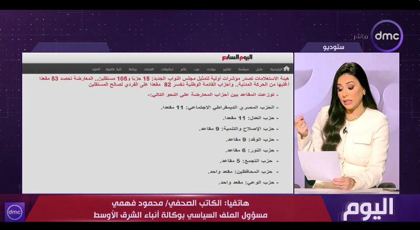 واختتم الكاتب محمود فهمي، حديثه بالتأكيد على أن مجلس النواب 2025 بتكوينه المتنوع يمثل خطوة مهمة نحو ترسيخ الممارسة الديمقراطية، مشيرًا إلى أن المرحلة المقبلة ستشهد تحديات تشريعية تتطلب تعاونًا جادًا بين مختلف القوى السياسية لتحقيق تطلعات المواطنين ودعم مسيرة التنمية في مصر، وأن عدد السيدات في مجلس النواب سيصل إلى نحو 160 نائبة، وهو رقم يعكس تقدمًا ملحوظًا في ملف تمكين المرأة سياسيًا، ويؤكد حرص الدولة على تعزيز مشاركة المرأة في الحياة النيابية وصنع القرار.