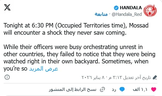 أعلنت مجموعة «حنظلة» السيبرانية المرتبطة بإيران، نيتها تنفيذ هجوم إلكتروني ضد جهاز الموساد الإسرائيلي، مهددة بما وصفته بـ"صدمة مفاجئة" خلال ساعات، في تصعيد جديد ضمن الحرب السيبرانية بين طهران وتل أبيب.