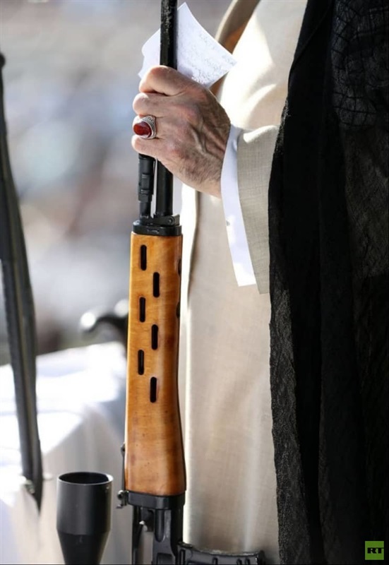 ظهر المرشد الأعلى الإيراني، علي خامنئي أثناء إلقائه خطبة صلاة عيد الفطر، اليوم الأربعاء ممسكا بقطعة سلاح، فيما أكدت وكالة "فارس" أن المرشد كان يحمل بندقية قنص روسية "دراغونوف".