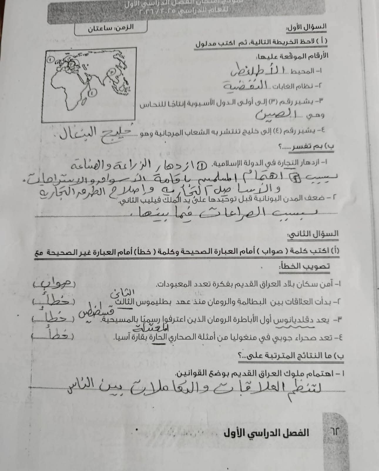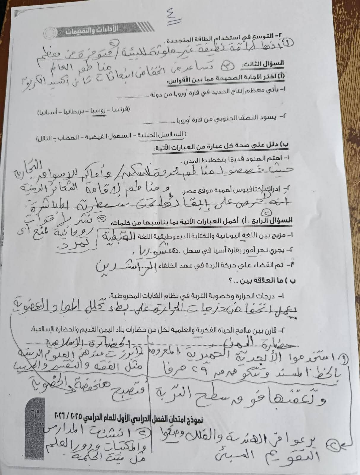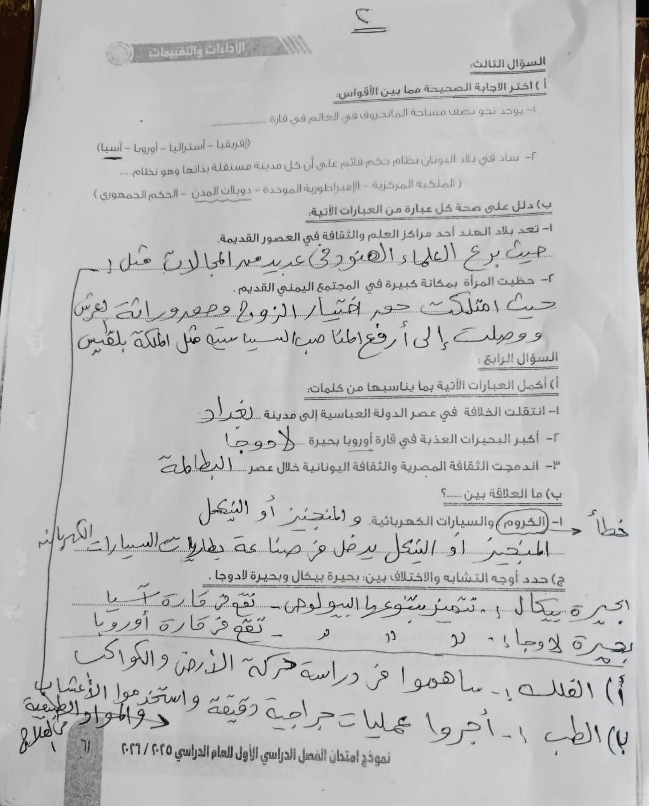ويمكن الحصول على حل تقييمات مادة الدراسات لطلاب الثاني الإعدادي الترم الأول 2026 من خلال مطالعة الصور التالية: